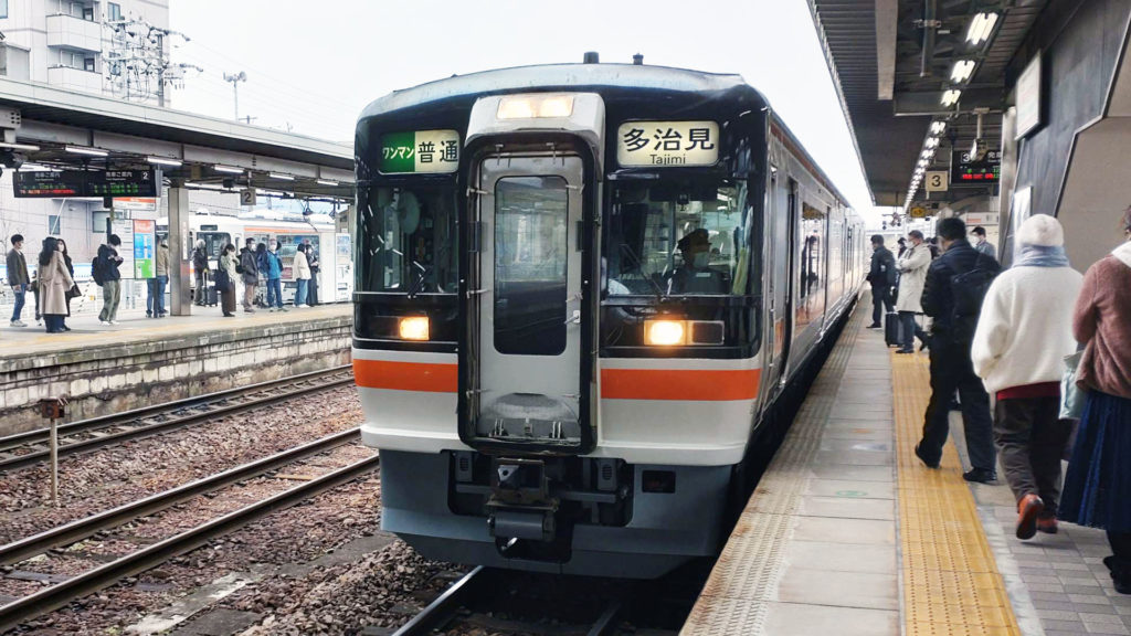 多治見駅からは名古屋駅方面からやってきた中央線の列車に乗ります。車両は211系5000番台。