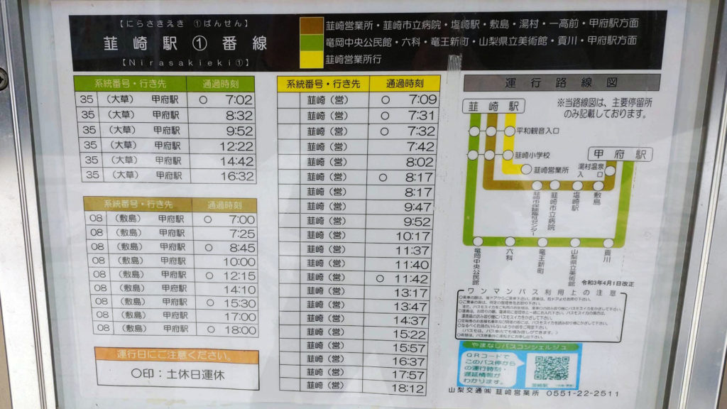 で、ここで大きなミスを。甲府駅行きの12:22のバスに乗るはずが甲府行き12:15のバスに乗ってしまったのです...
