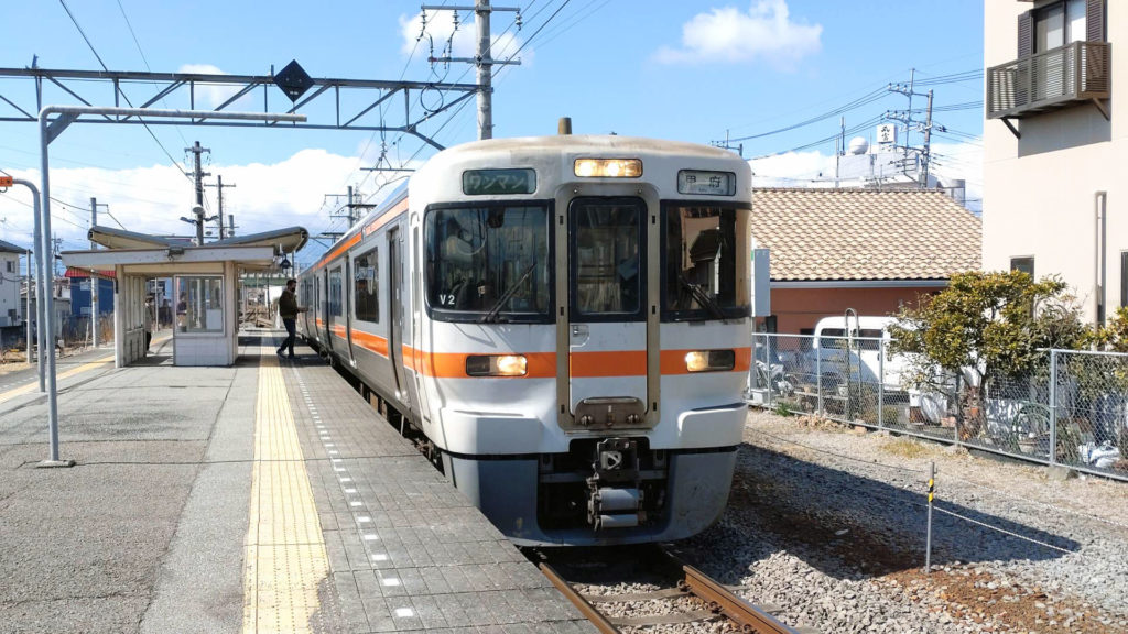フカサワ温泉から20分ほど歩いて国母駅から身延線の列車に乗り甲府駅方面に向かいます。車両は313系3000番台。
