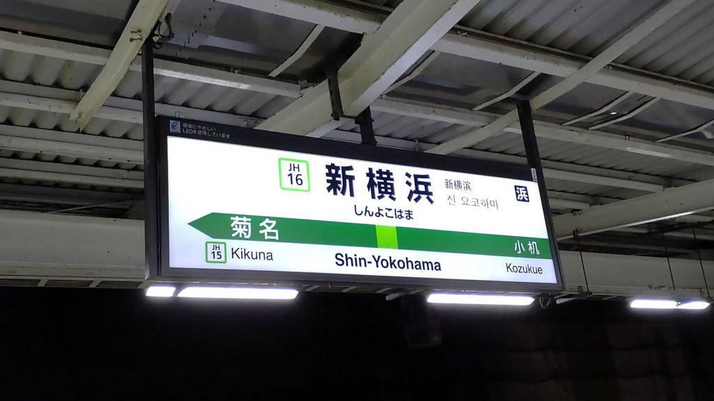 新横浜駅に到着です。外はだいぶ暗くなってきてお腹もすいてきたので夕食に良い感じです。