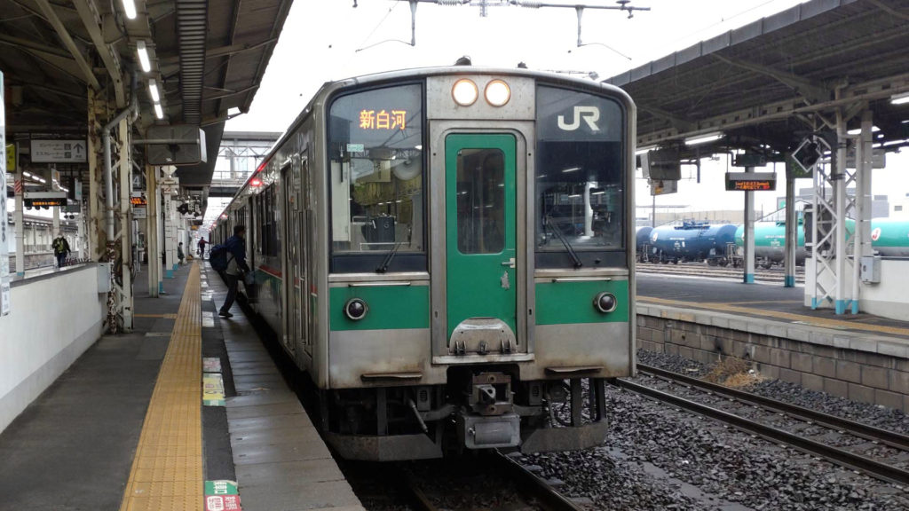 引き続き東北本線の列車に乗ります。車両は701系1000番台。新白河駅方面から来た車両が郡山駅で折り返しで新白河駅行きになったのですが、2両編成で到着後に2両増結して4両編成になったので余裕で座ることができました。(ホームで待ってる人が多かったので2両だと多分座れなかったかも)
