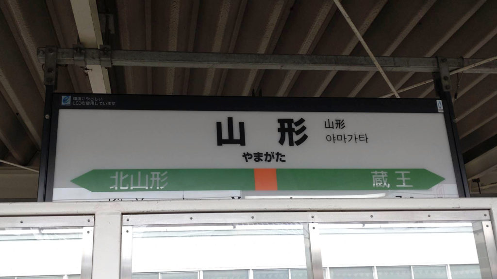 まずは山形駅で乗り換え。山形駅に鉄道で来るのは今回の旅が初めてなのですが、以前車では近くに来た事があって(東北芸術工科大学までDE DE MOUSEのライブを観に来た時に)その時は駅から徒歩で20分位の場所にある栄屋本店というお店に冷やしラーメンを食べに行きました。とても美味しかった記憶があるのでまた食べに行きたいです。山形県にはご当地ラーメンが結構あるので色々食べてみたいです。