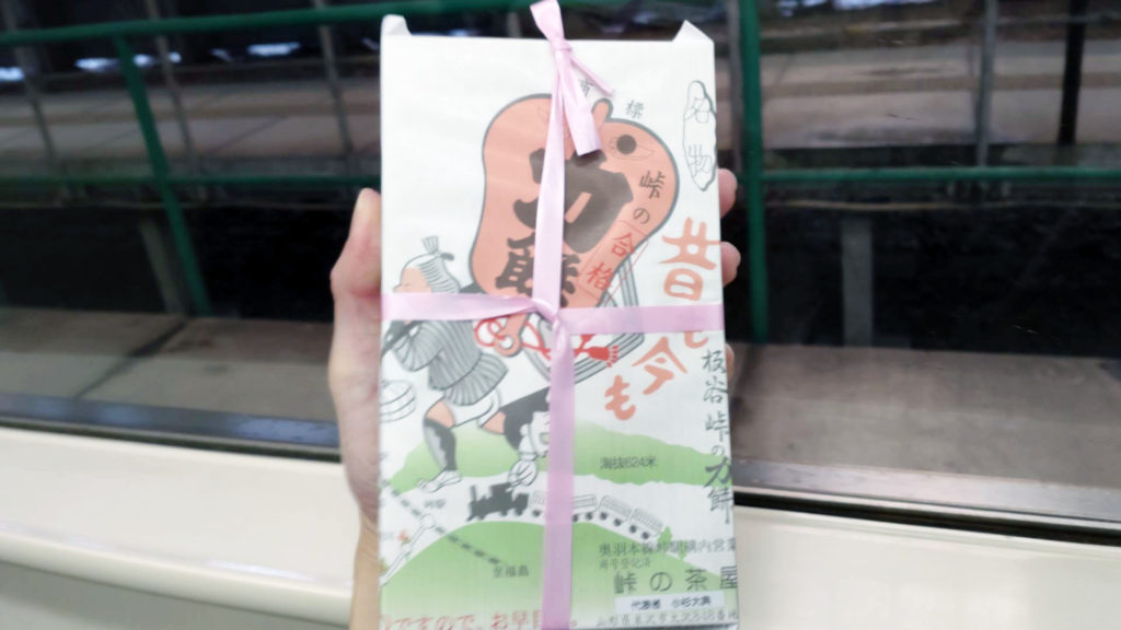 峠駅の名物峠の力餅を購入しました。この力餅、今ではかなり珍しい駅のホームでの立売りで販売されています。峠駅に行って購入してみたいとずっと思っていたので今回行くことができてかかなり嬉しかったです。峠駅は山形新幹線は通過していく駅なので福島駅か米沢駅から普通列車に乗って行く必要があります。また、停車時間も短いのでお金も用意しておいた方が良いと思います。(2023年3月時点で1000円でした)峠の力餅は外の餅が柔らかいが弾力もあり餡子も丁度いい甘さで美味しかったです。