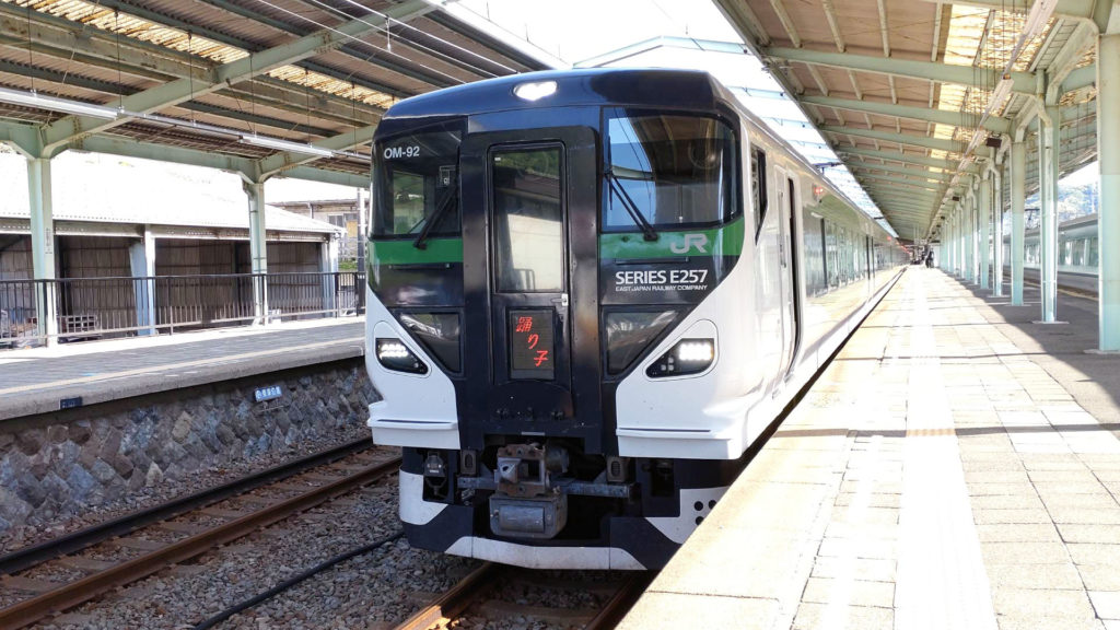 隣には通常の踊り子号に使用されているE257系2000番台も停まっていました。今回乗る右側のE257系5000番台は白ベースに緑色なのでE257系の前に踊り子号に使われていた185系のカラーに近い気もしますが。