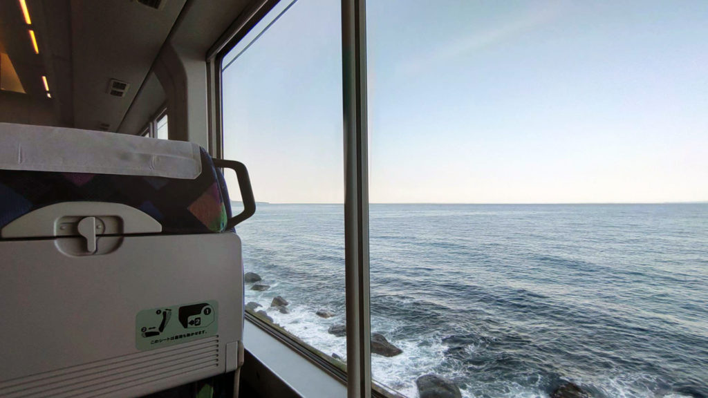 リクライニングするシートでリラックスしながら海を眺めるのは想像以上に良い体験でした。これはプラス600円払う価値が充分あるなと思いました。