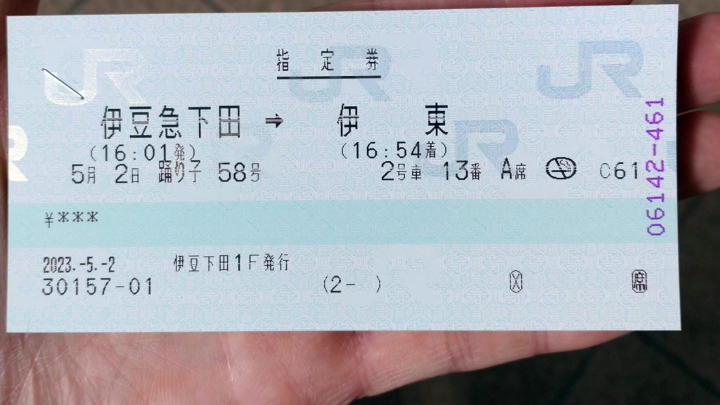 踊り子号は全席指定席なので指定席券もついてきます。窓口で海側の席に座りたいですと希望を伝えたらパパっと良い席を予約してくれて嬉しかったです。