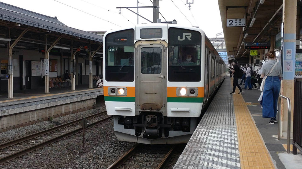 両毛線から上越線へ乗り入れる高崎駅行きの列車に乗ります。車両は今回も211系3000番台。