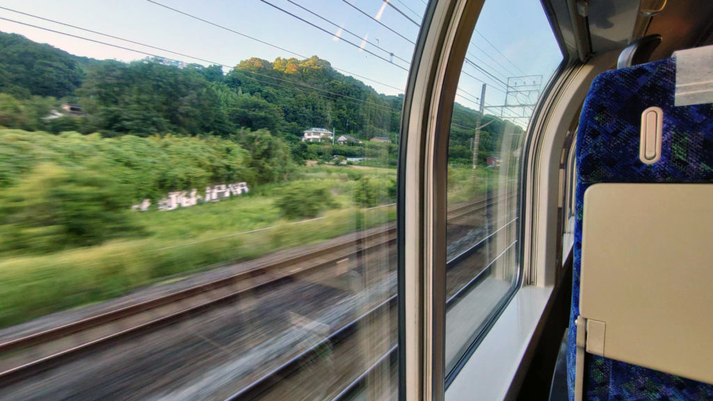 病み上がりの体力低下もあってちょっと疲れが出てきたので贅沢してグリーン車に乗る事にしました。スマホのモバイルSuicaで思いついてすぐにグリーン券を買う事ができるので便利です。(モバイルSuicaで購入手続きしたら席の上部にあるSuicaのICチップ読み取り装置にタッチするとランプが使用中に切り替わります。
