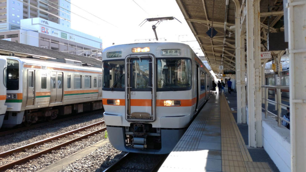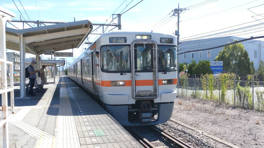 国母駅から身延線の列車に乗ります。車両は313系2000番台。無人駅なので青春18きっぷのスタンプを押してもらえないため車掌さんに18きっぷを見せて聞いた所、降りる駅でスタンプを押してもらってくださいとのことだったのでそのまま降りる駅まで向かいます。身延線の場合ワンマン列車の場合はバスみたいな整理券が扉の近くにあるので受け取っておけば降りた駅で説明しやすいのですが、今回はワンマン列車ではなかったので特にそういうのもありませんでした。