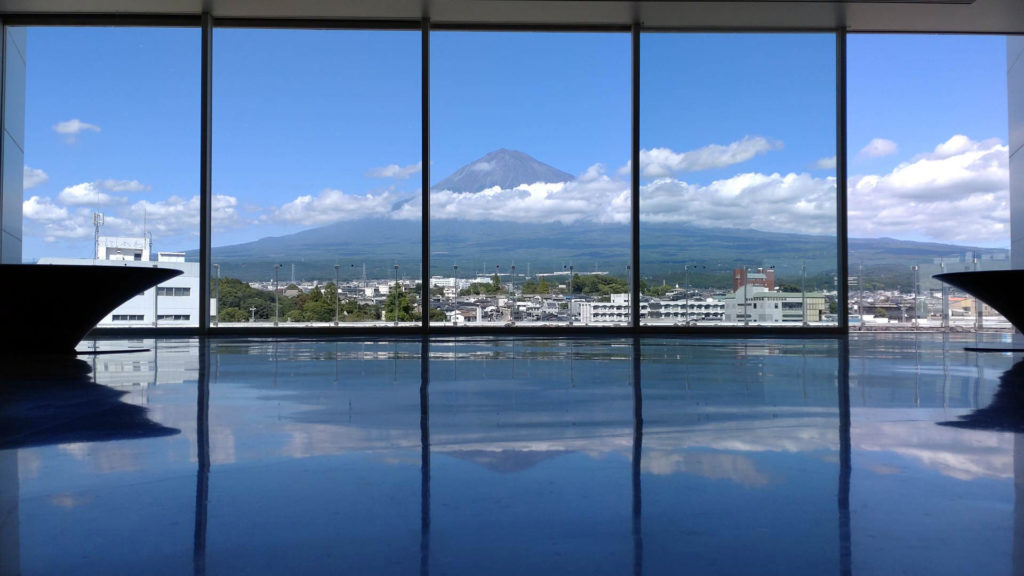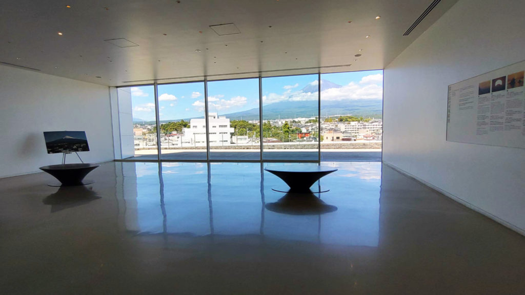 ベランダに出る事ができるようになっていて広大なスケールの富士山を見る事がきるようになっています。富士山は遠くから見ても富士山だなという形ですが近くで見るとその大きさに圧倒されます。そして高い場所から見ると富士山が縦に高いだけでなく横にも大きく広がってる姿が良く分かり感動しました。