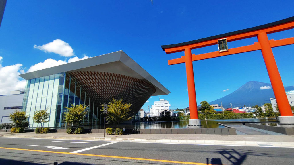 鳥居の隣には静岡県富士山世界遺産センターがあります。こちらも特徴的なデザインの建物で身延線の列車の中から見かけて気になっていました。