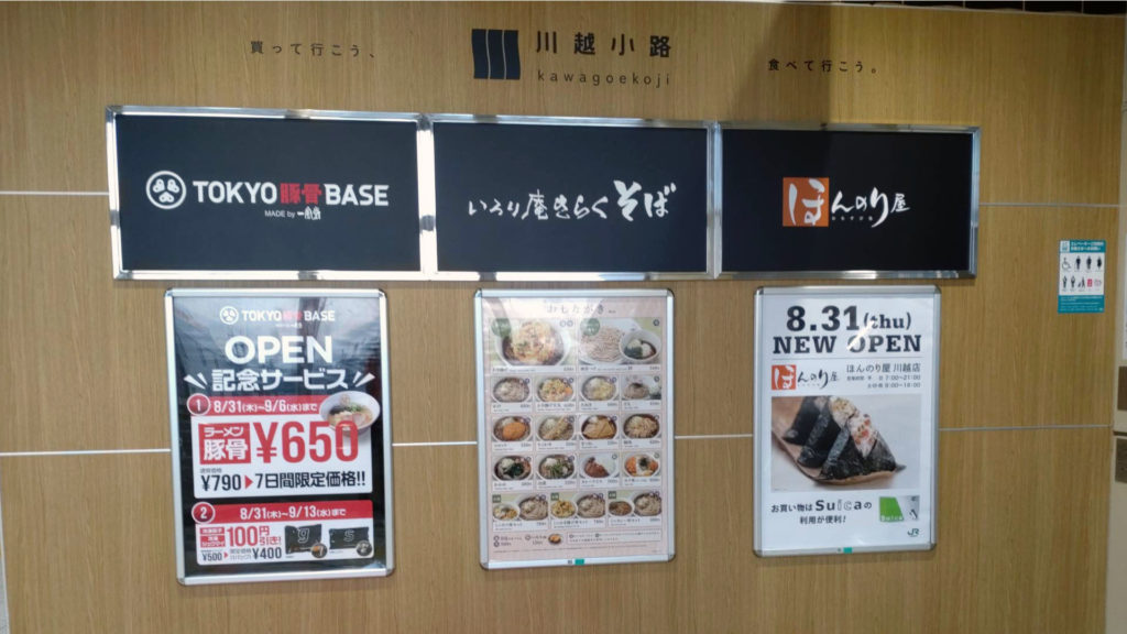 夕食の時間帯だったので川越駅周辺で夕食食べてから家に帰ろうかなと思い、ちょうど前日の8月31日に川越駅のJR改札内にTOKYO豚骨BASEがオープンして記念サービスで割引をしていたので食べてみる事にしました。