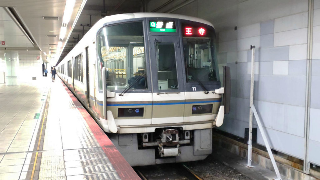 関西本線(大和路線)の列車に乗ります。車両は221系。201系はしばらく発車しないので先に発車するこちらの列車に乗ります。とはいえ221系も1989年にデビューらしいのでこちらも十分な歴史がありますね。関西本線はJR難波駅と名古屋駅の間を走っている路線で以前、名古屋側のJR東海エリアでは温泉に行く時に乗ったことがありましたがJR西日本のエリアでは初めてです。