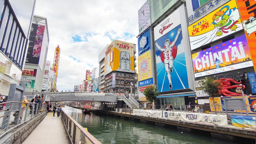グリコの看板です!!!よくネットやらテレビやらで見ていた看板を遂に近くで見る事ができました。道頓堀川沿いに沢山の看板が並んでるの良いですね。