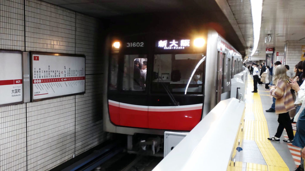 大阪メトロ御堂筋線の列車に乗ります。車両は大阪メトロ30000系。