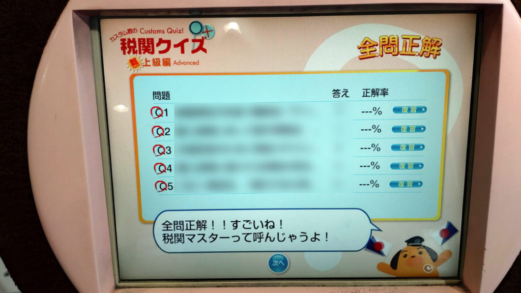 カスタム君ファンとしては上級編に挑みたいところです。タッチパネルの画面でクイズに答えます。(2025年11月追記)