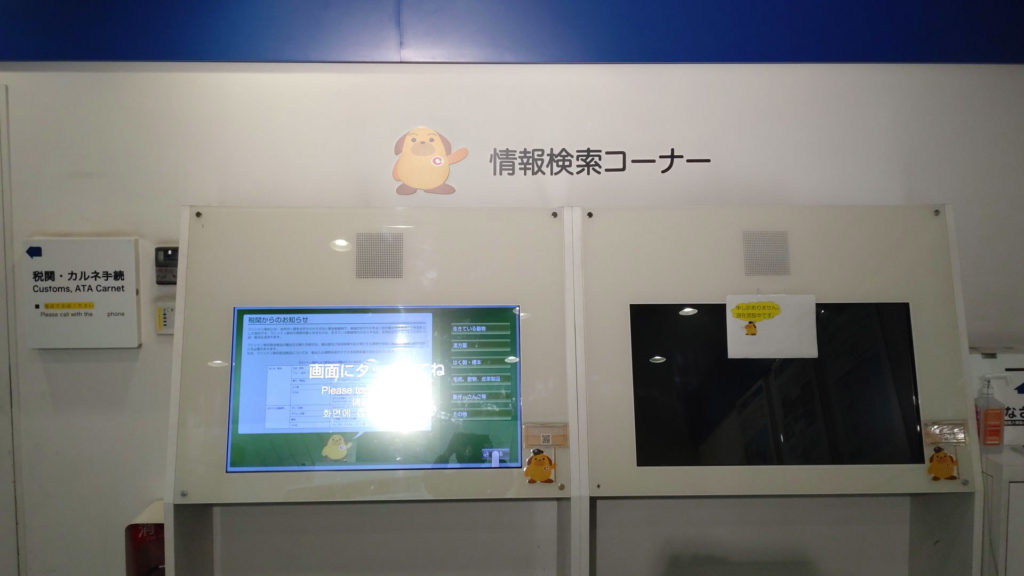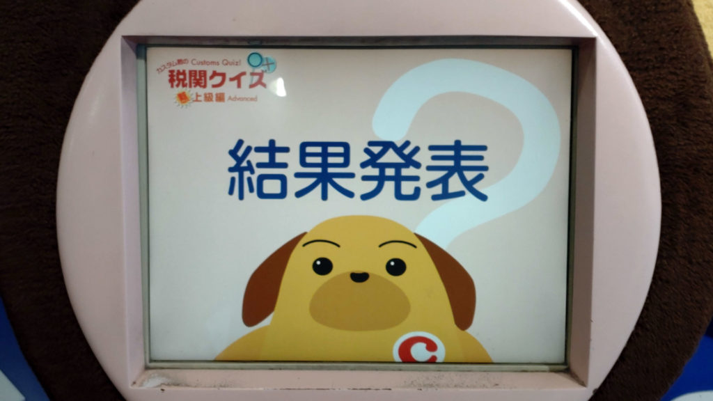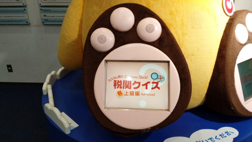 両後ろ足の裏には何故かタッチパネル式税関クイズが埋め込まれています。手前の左後ろ足には税関クイズ初級編