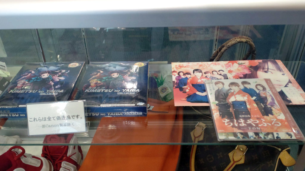 みんな大好きニセモノコーナーです。キャラクターグッズ(ニセモノ)からブランド品(ニセモノ)まで幅広いラインナップ。