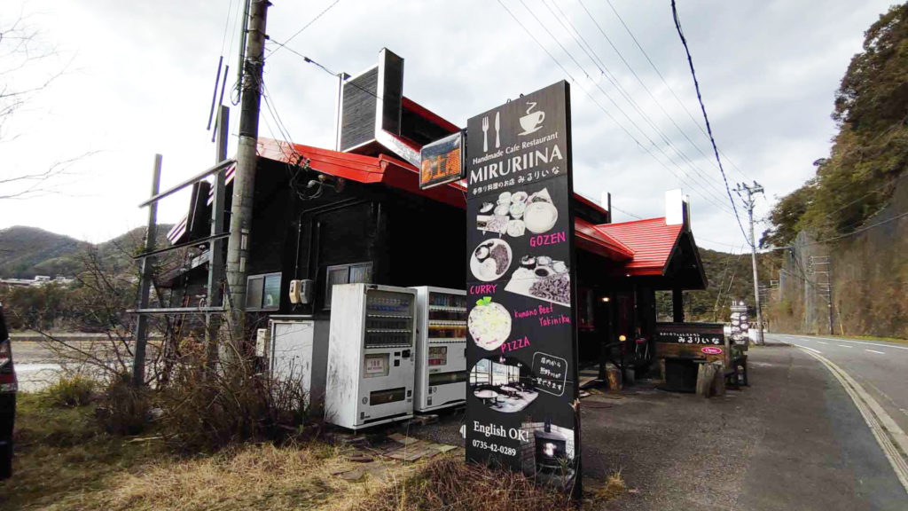 熊野本宮大社でお詣りした後にお昼ご飯を食べに みるりいな というカフェレストランに行きました。本宮大社からは車で5分くらいで国道沿いにあり場所も分かりやすかったです(道はカーブが多いのであらかじめカーナビでセットしておいて近くになったら少しスピードを落としておくと良いと思います)人気があるお店で13時くらいに到着して駐車場が空くのを待ち店内では席が空くまで30分くらい待っていました。熊野川沿いにあるお店なので窓側の席だと川を眺めながらお食事をする事ができますが混みあってたのでたまたま空いた窓から遠い席になり全く景色は見えませんでした(笑)内装などの造りもオシャレで居心地良い感じなので窓際以外の席もそれはそれで良い感じでした。