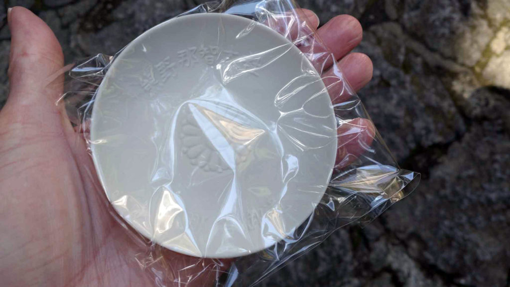 神盃で延命長寿のお瀧水をいただきます。この水は那智滝の滝壺から引いてきているらしいです。