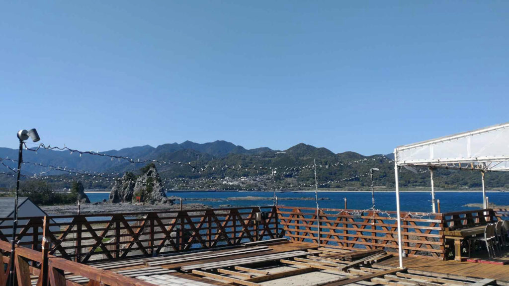 カフェの前の道からの海の眺めもとても良かったです。今回の旅の数か月後にもまた那智勝浦に旅しに来たのですがその時はこの近くの宿に泊まりました。
