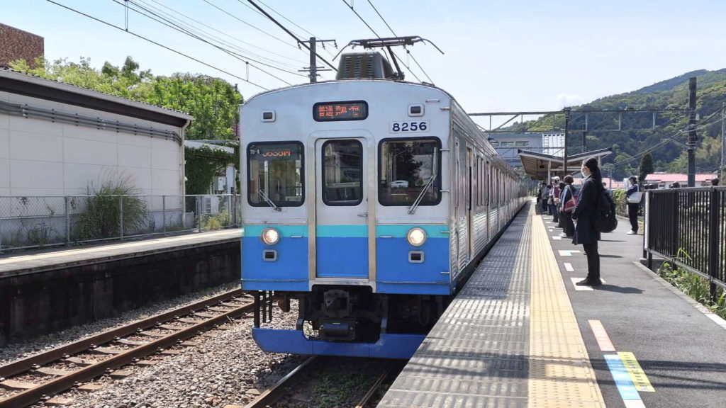 伊東線の列車に乗ります。車両は伊豆急行8000系。