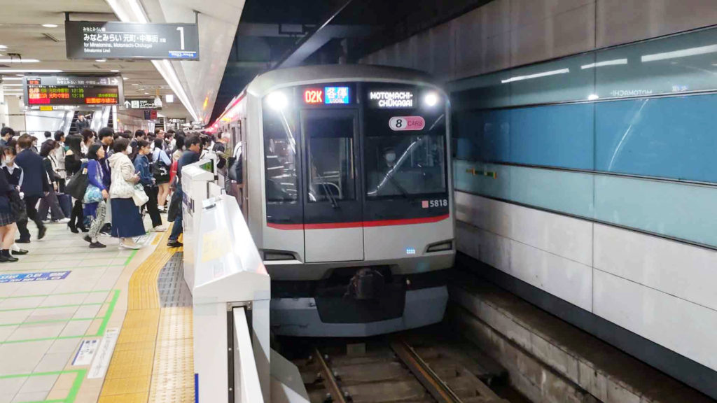 横浜高速鉄道みなとみらい線の列車に乗ります。車両は東急の5000系。
