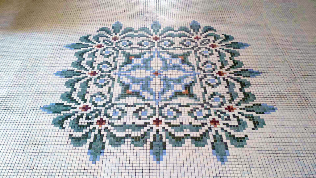 入口近くの床には見事なモザイクアートがありました。