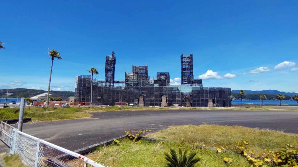 紀の松島観光の紀の松島めぐり遊覧船の太地くじら浜公園桟橋のすぐ近くには第一京丸という捕鯨船が展示されているのですが僕が行った時は丁度改修中で周りを足場などに囲まれていました(その後改修が終わり今は見えるようになってるようです)