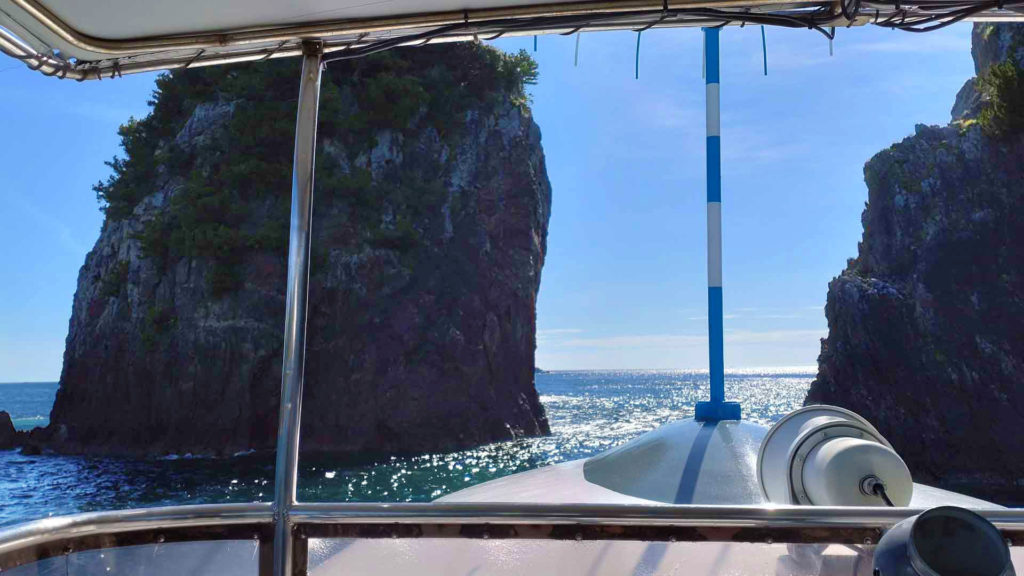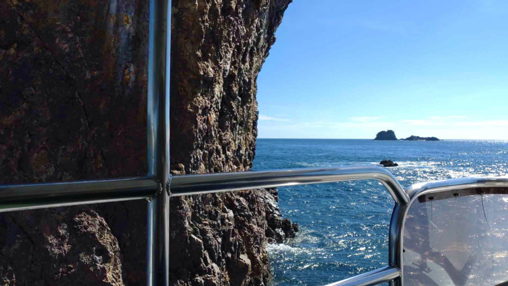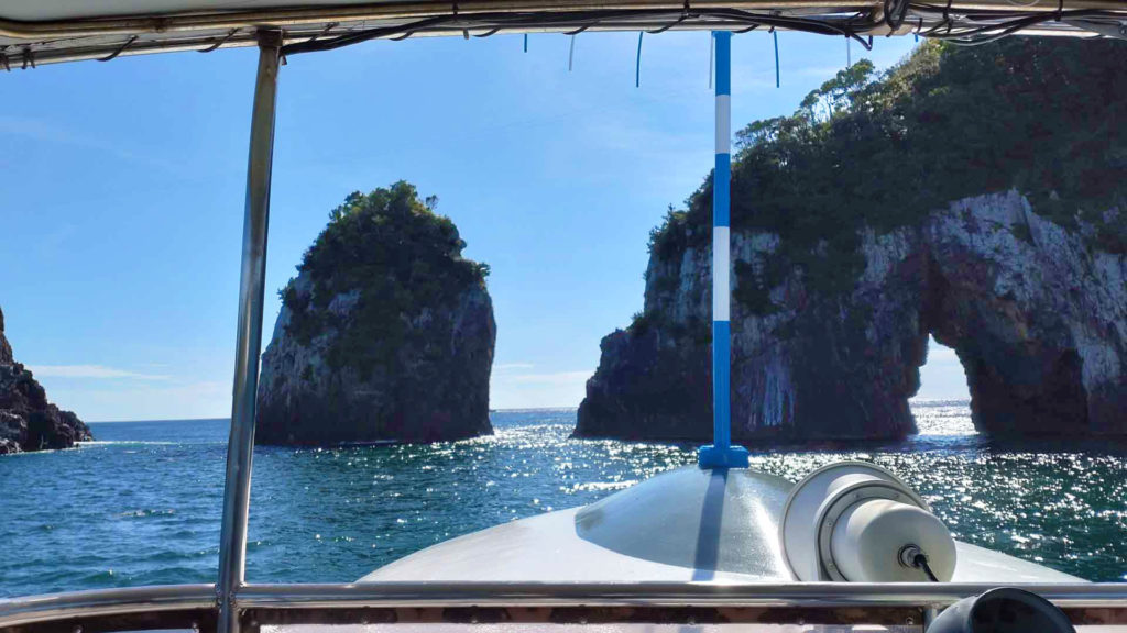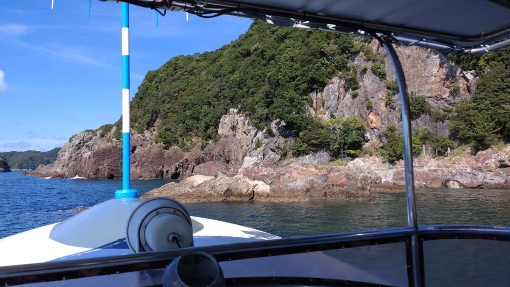 そしてまさかの島の間の狭いスペースを通過していきました。島の岩と岩の間を通っていく時はかなりテンション上がりました。