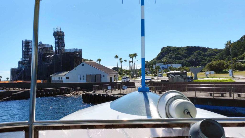 太地くじら浜公園桟橋に到着です。ここから折り返して先ほど乗船した勝浦観光桟橋へと向かいますが、ここで途中下船することもできます。