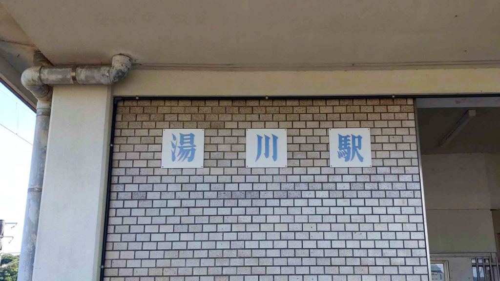 湯川駅に到着です。ホームに駅名標が見当たらなかったので駅舎にあった駅名のパネルです。