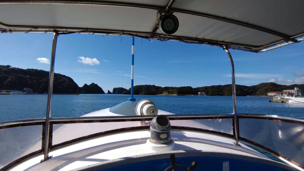 くじら浜海水浴場を出発して船で勝浦へ戻ります。