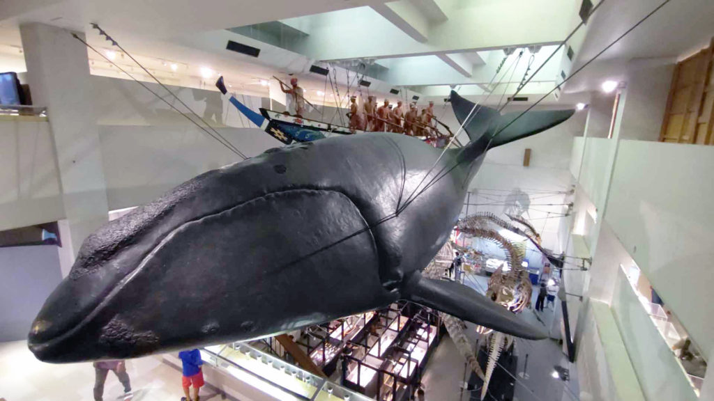 吹き抜け部分上部に展示されていたクジラと捕鯨の模型です。
