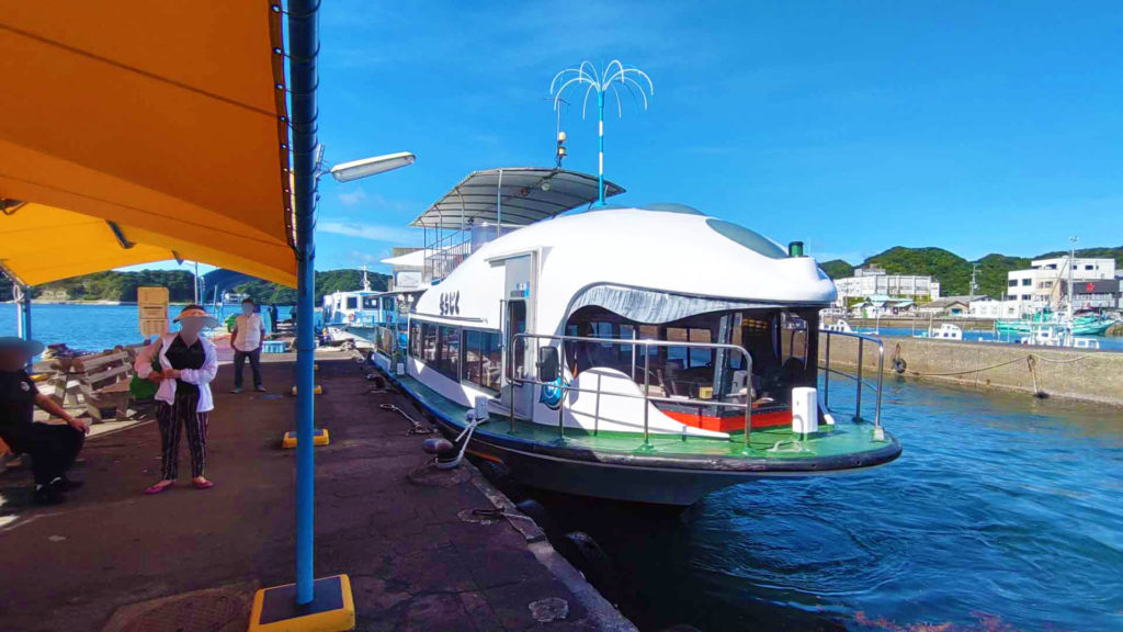 太地くじら浜公園桟橋から紀の松島観光の紀の松島めぐり くじら号に乗船します。