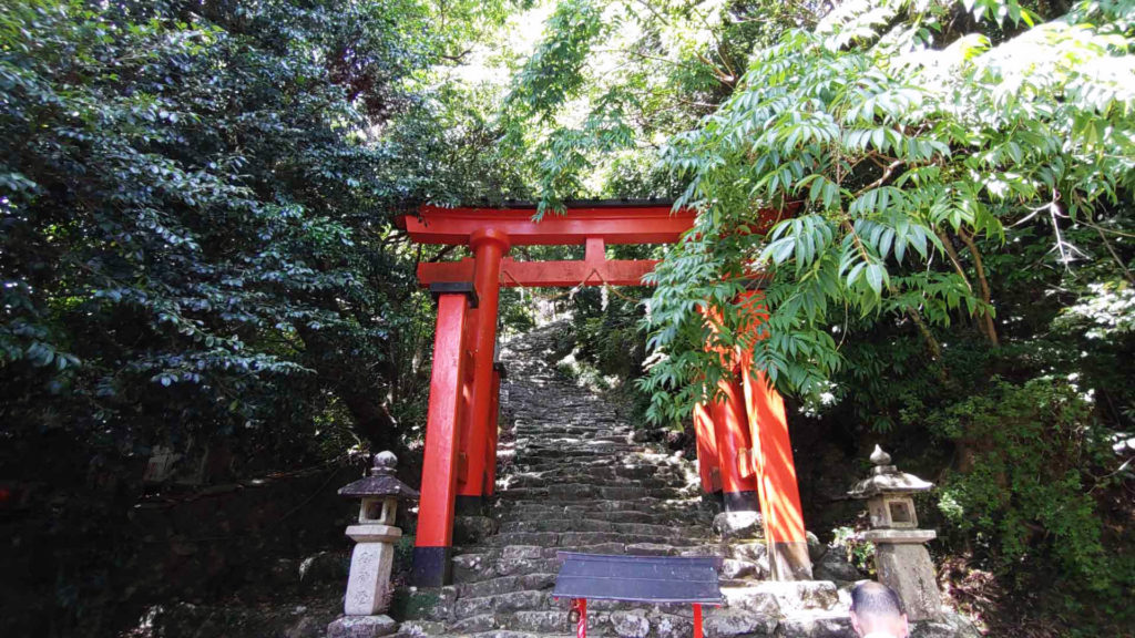 鳥居をくぐりその先は神倉山を石段で登っていきます。538段ある石段は熊野古道の一部で源頼朝が寄進したと言われているそうです。結構急な角度だったり石の大きさも不規則だったりで登るのも下るのも大変でした。石段を登るのが難しい場合は階段の下の鳥居のところでお詣りできるようにもなっていました。