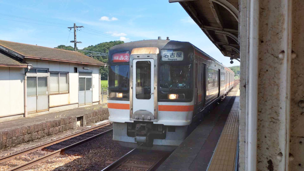 紀勢本線から伊勢鉄道伊勢線、関西本線を経由して名古屋駅へ向かう快速みえ号に乗ります。車両はキハ75形。帰りも自由席にしました。多気駅から乗車の場合途中駅なので座れるか微妙なとこでしたが4人がけのボックスシートに相席(キハ75は転換クロスシートですが転換できない席がありそこは向かい合わせの4人掛けシートになります。)で座る事ができました。