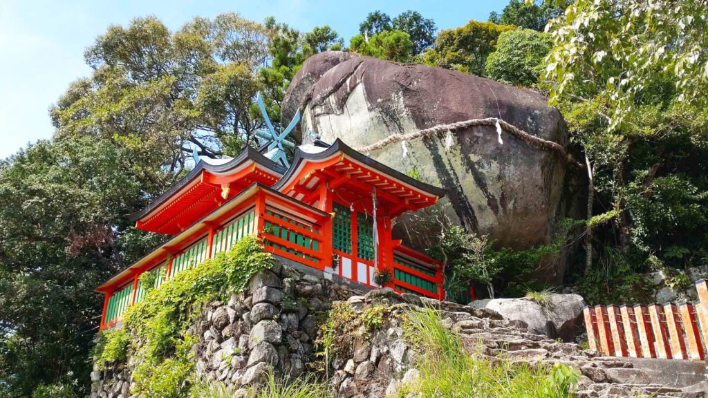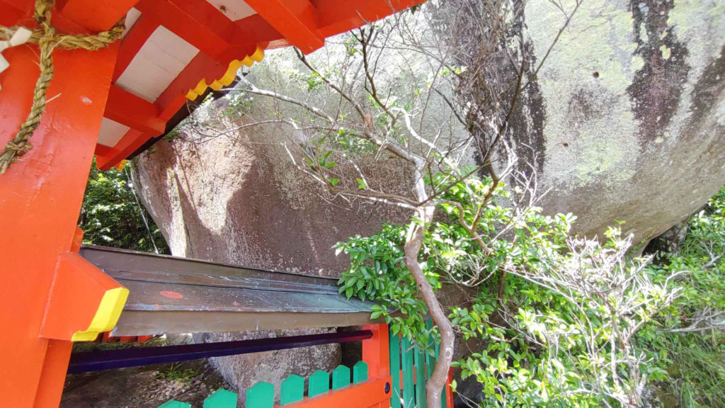 お詣りするために拝殿の前まで階段で登るとゴトビキ岩のすぐ近くに行くことができます。