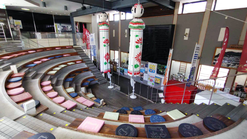 鳴子温泉駅の駅舎にある待合室は階段状のホールのような珍しい造りでした。
