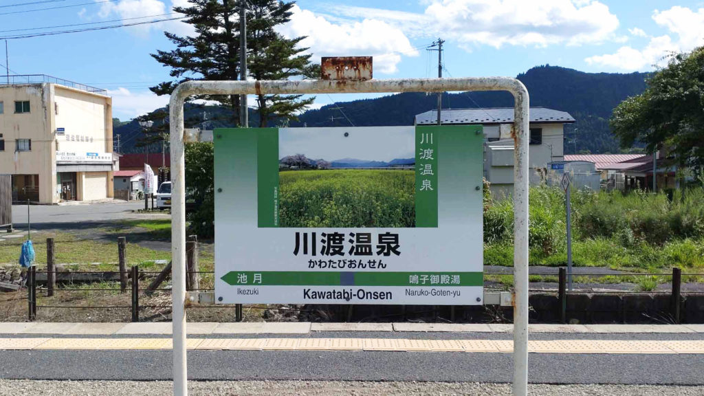 途中に大きな橋があってここを渡ると川渡温泉です。駅から温泉街までだいたい20分位でした。川渡温泉の温泉街には温泉宿や共同浴場の他にいくつか飲食店があります。また1日1本のようですが仙台駅から川渡温泉の温泉街まで直接来れる高速バスもあるので仙台あたりから直接来る場合は高速バスも便利だと思います(仙台駅前から鳴子温泉行きの高速バスで途中に川渡温泉の停留所があります。詳しくは宮城交通のHPにて)。