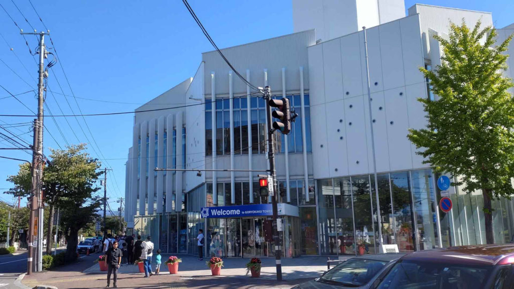 五稜郭タワーの入り口です。オープンちょっと前に着いたのですが入り口前に行列ができていました。オープン時間になり建物の中に入ると1階に受付があり入場料を払いエレベーターで展望台まで上がります。