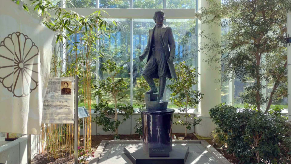 土方さんの像。椅子に座ってくつろいでいます。