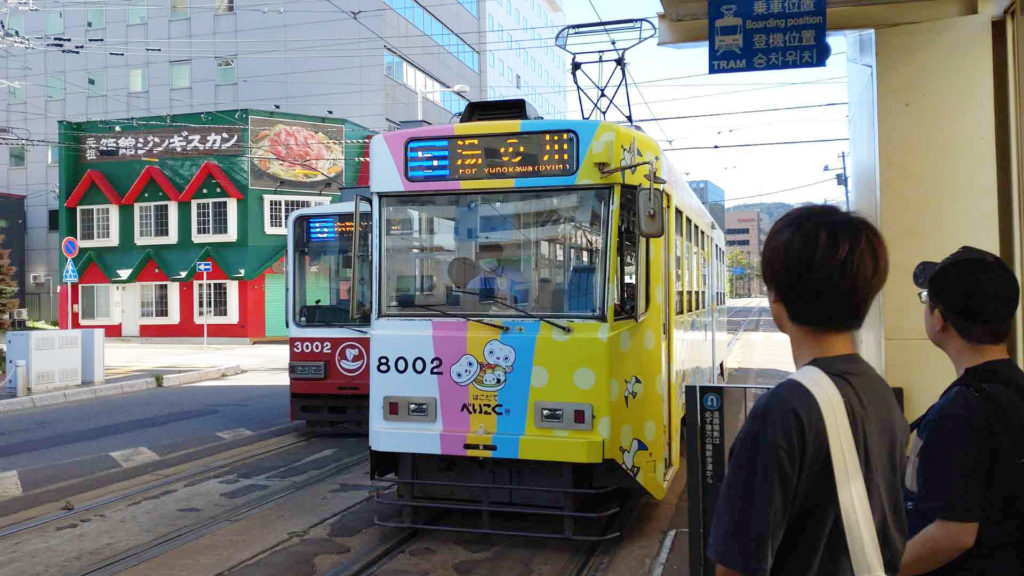 函館市電に乗ります。車両は8000形。