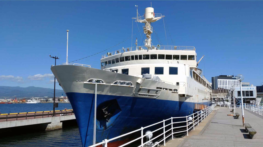 函館市青函連絡船記念館摩周丸 です。北海道と本州を鉄道で結ぶ青函トンネルが作られる前に青森と函館の間で就航していた青函連絡船 摩周丸の船体を使用している博物館です。