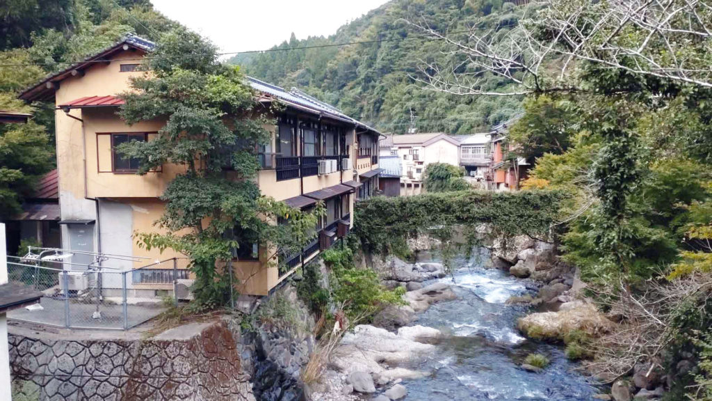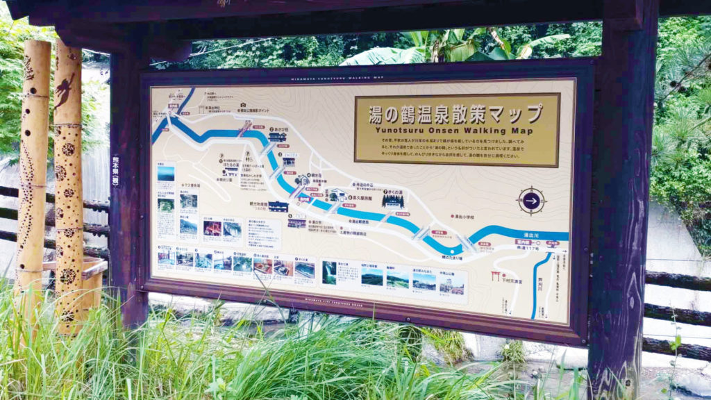 湯の鶴温泉は熊本県水俣市の市街地から10キロ弱と近場の山間部にあり湯出川沿いに温泉宿などが並んでいます。今回はカーシェアの車を運転して行きましたが水俣駅などから路線バスがあるので公共交通機関でも行きやすい温泉地かと思います。