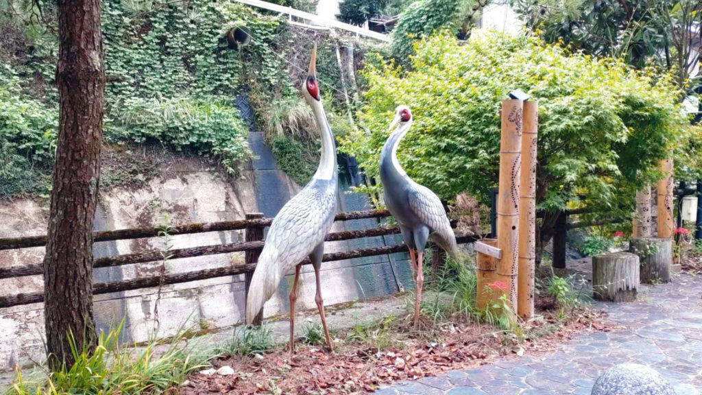 約700年前に温泉に浸かって傷を癒している鶴を見かけ発見した温泉というのが湯の鶴温泉の名前の由来と言われているそうです。温泉地あるあるの動物、傷を癒しがちのパターンですね。