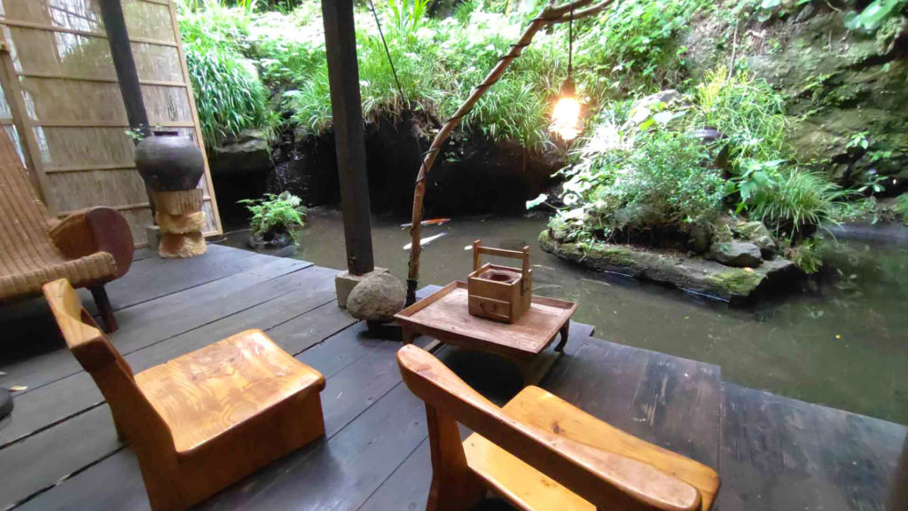 その奥には庭にある池がありその手前も共有スペースになっていました。