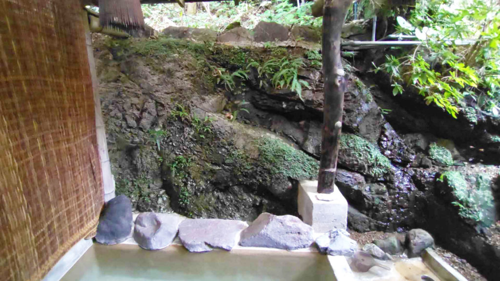 露天風呂ですが屋根も付いているのでちょっとした雨程度なら入浴できそうです。