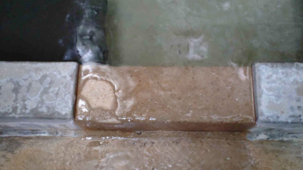 源泉が投入された分だけ浴槽淵の切り掛け部分からお湯が溢れていく源泉かけ流しの温泉になっています。
