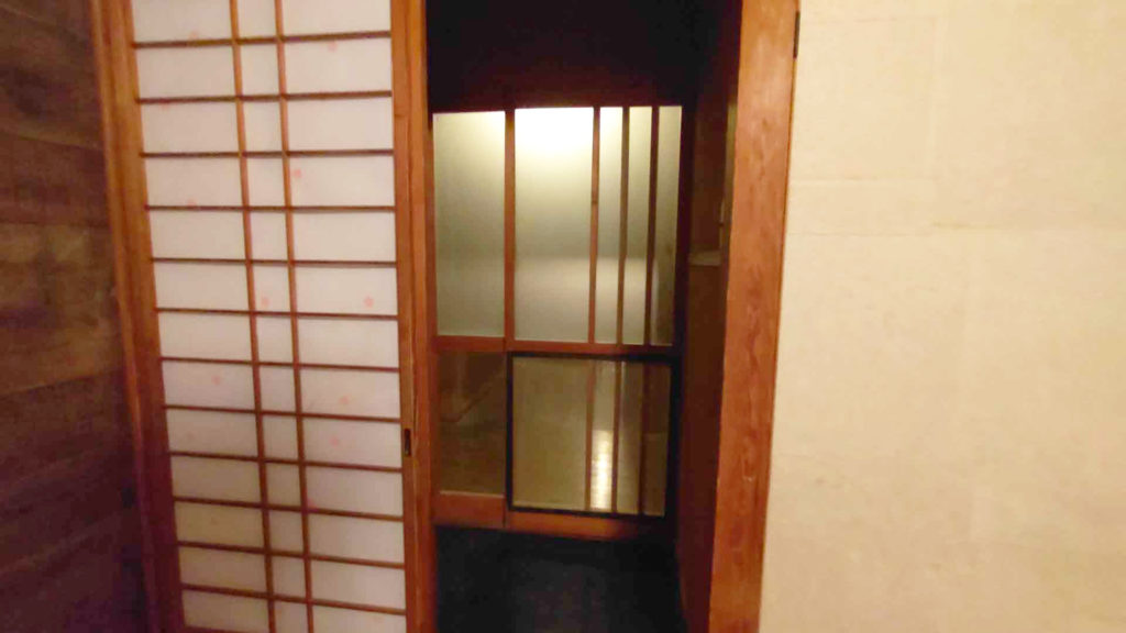 廊下と部屋の間にスペースがありました。廊下側の扉はガラス張りで鍵がかかり部屋側は障子の扉があるので部屋にいる時は両方閉める感じですね。